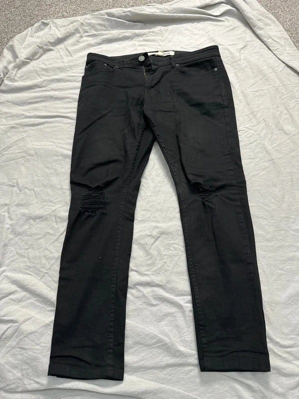 The New Look Men's Black Skinny Ripped Jean W34S L30 is available in sizes XL.