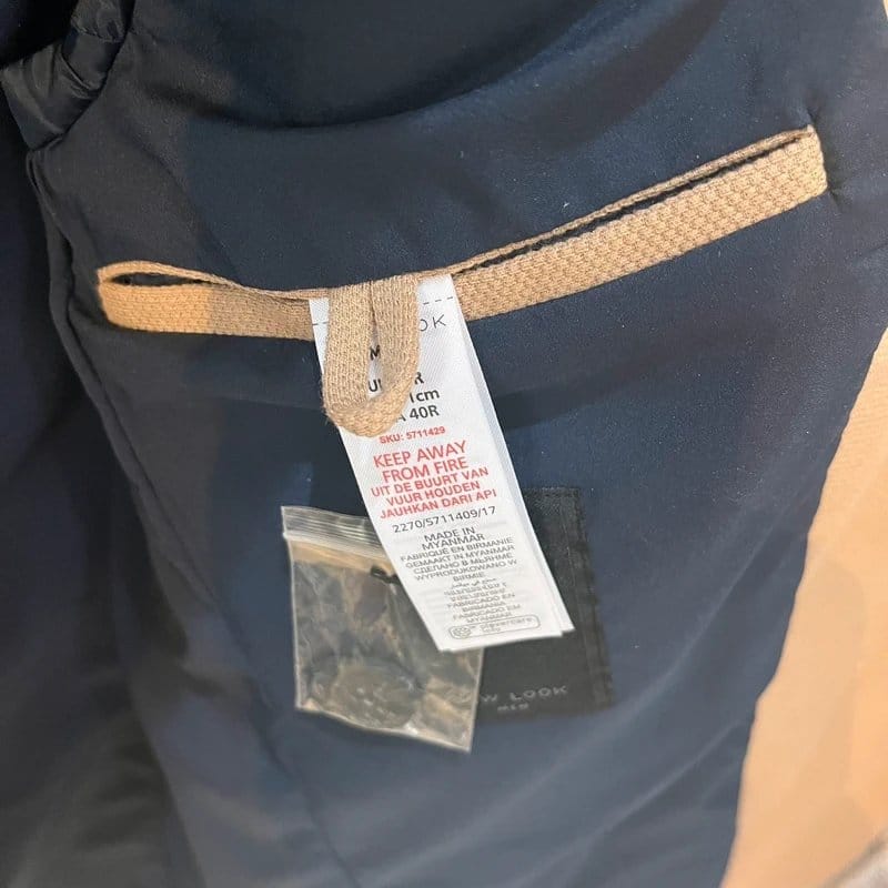 The New Look Tan Men's Blazer 40R is made from polyester, cotton.