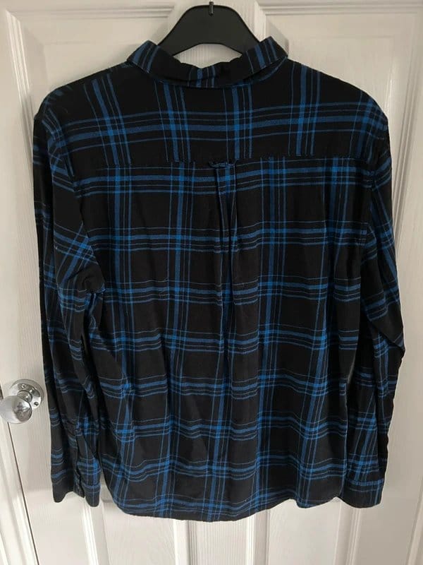 The New Look Men's Blue and Black Checked Shirt is available in sizes L.