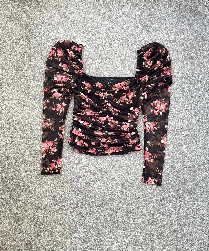The New Look Black Floral Ruched Top is ideal for casual, evening, party.