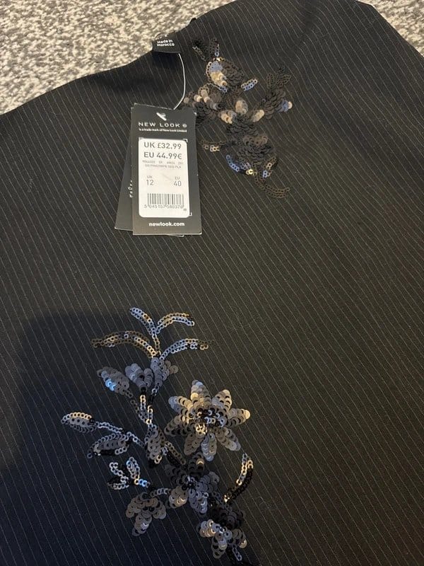 See all outfit ideasThis long black skirt features embellished sequins and a slit at the back. It has a zip closure and is 85cm in length, perfect for a business look.