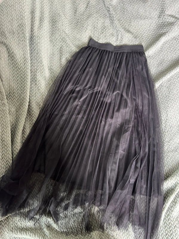 This black midi tulle skirt from New Look features a pleated design and a high-waisted silhouette. Ideal for evening events or casual outings.