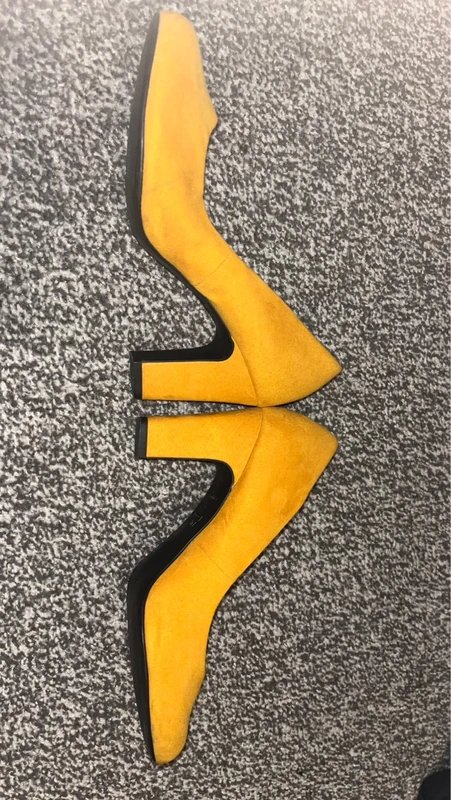 The New Look Mustard Suede Heels is available in sizes XXXL, XXL, XL, XS, L, M, S.