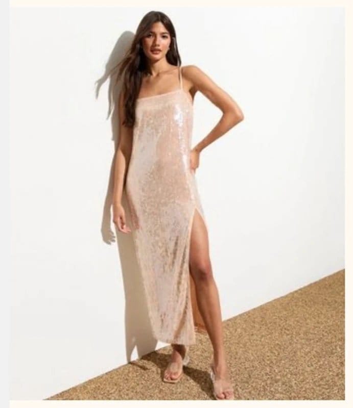 This stunning New Look midi dress is fully lined and embellished with sequins. Perfect for beach clubs, holiday evenings, and summer parties.