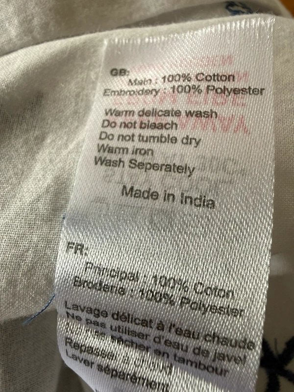 Oversized white shirt with gorgeous blue embroidery. Designed for a relaxed fit, this shirt features a crew neckline and short sleeves. Crafted from a blend of 100% cotton and 100% polyester, it offers a comfortable and durable wear. Perfect for casual outings or layering under jackets.