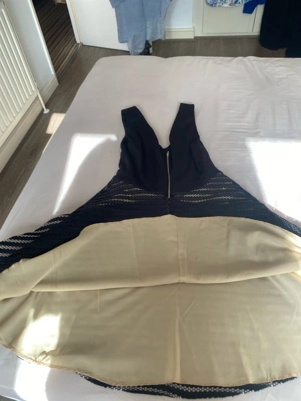 The New Look Black and Beige Party Dress Size 12 is available in sizes M.