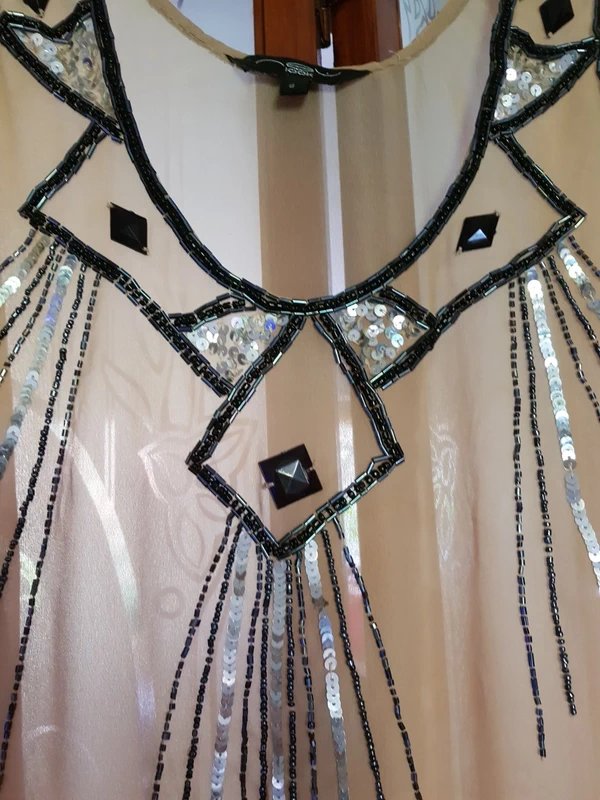 Beautiful New Look Party Sequin Embellished Beaded Top. Hand-wash only, dry cleanable, perfect for partywear or celebrations. Stunning silver sequins and black beads on top.