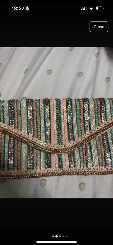 View Vinted's returns policyThe New Look Multi-Colour Embellished Clutch Bag is made from polyester, metal.