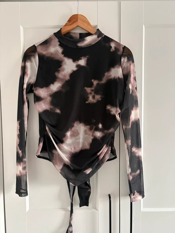 The New Look Patterned Mesh Bodysuit in Black is available in sizes L.