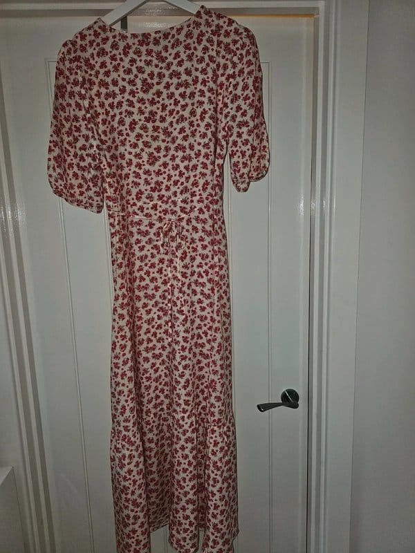 The New Look Pink Floral Ruched Midi Dress Size 14 is available in sizes M.