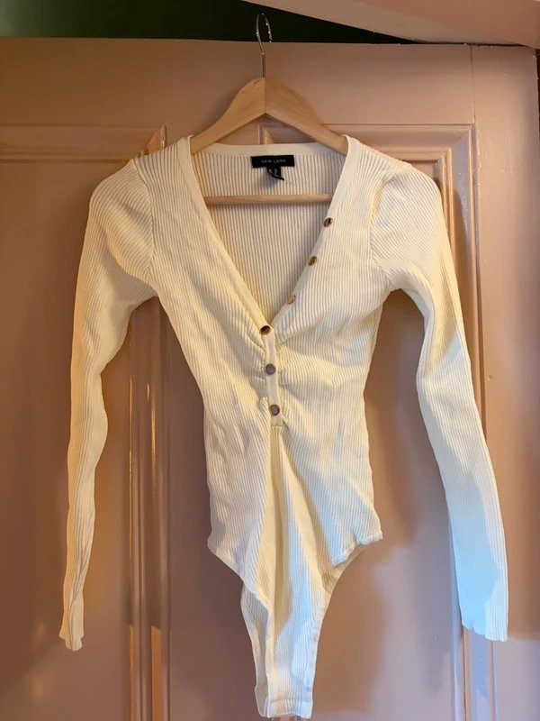 The New Look Ribbed Bodysuit in Cream is available in sizes S.
