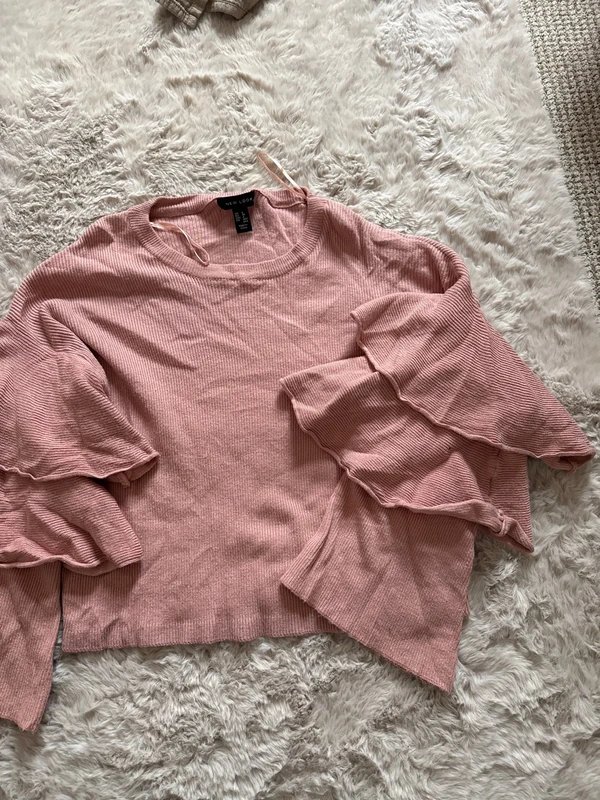 The New Look Ruffle Sleeve Crop Jumper in Rose is available in sizes S.