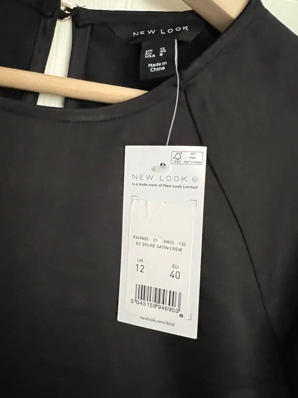 The New Look Black Satin Style T-Shirt Size 12 is available in sizes M.