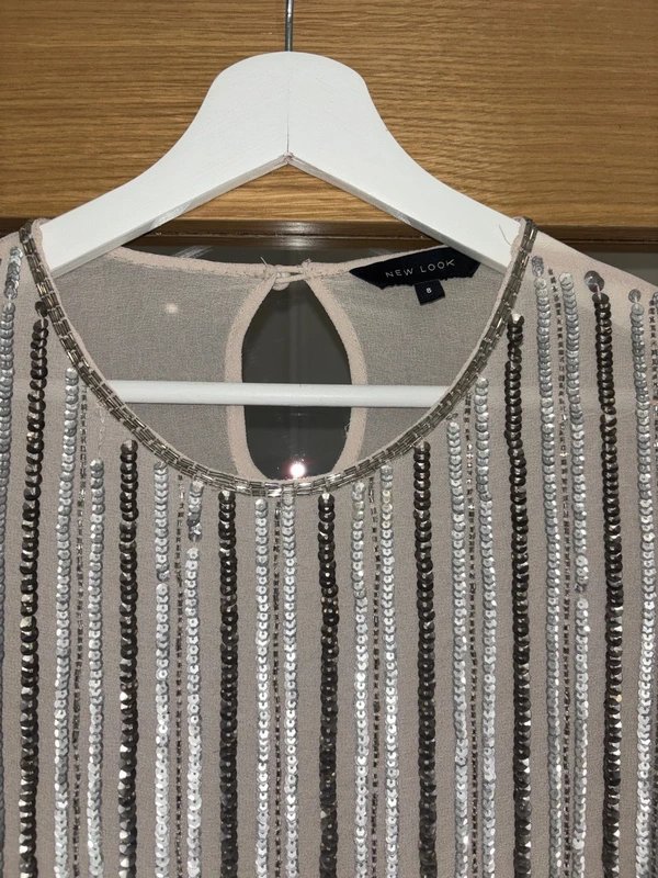 The New Look Embellished Boxy Cropped Top in Silver is ideal for party, date-night.