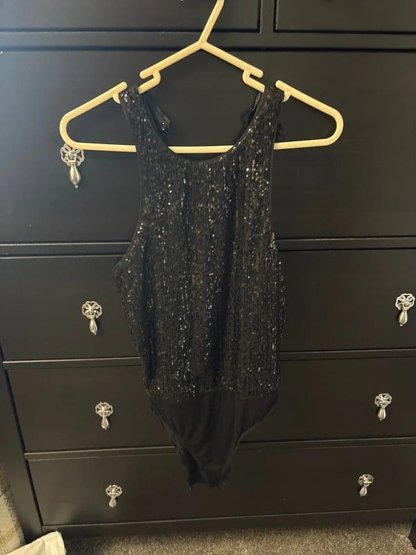 The New Look Black Sequin Bodysuit is available in sizes S.