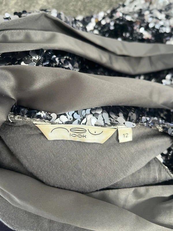 The New Look Silver Sequin Midi Dress is available in sizes M.