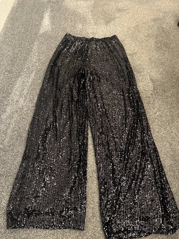 Striking black sequin pants by New Look. The pants feature a sequined fabric with a sparkly finish, perfect for evening events or special occasions.