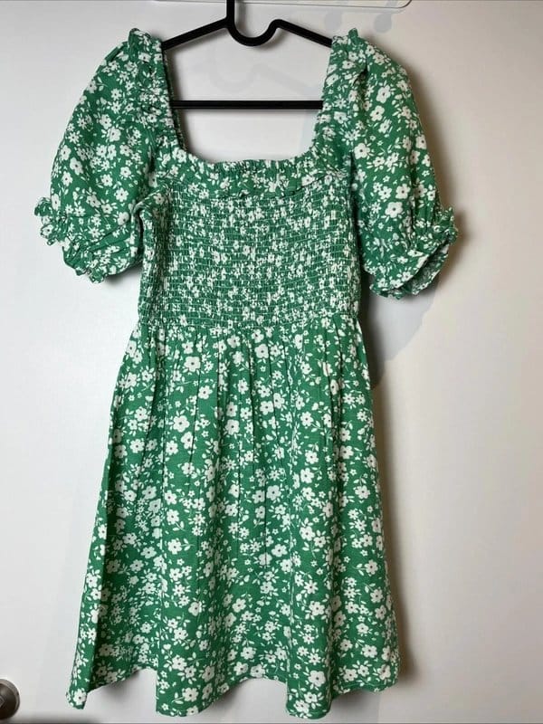 The New Look Green Floral Shirred Short Dress - Size 6 is ideal for casual, summer, picnic.