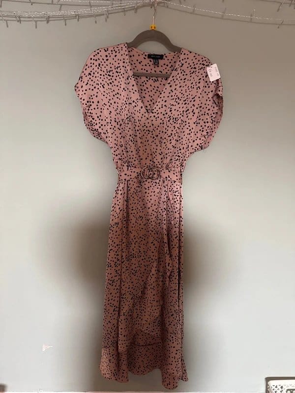 New Look Blush Pink Polka Dot Silk Dress