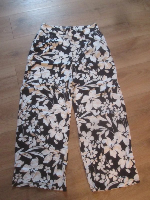 Elegant and versatile, these floral print wide leg trousers feature a pull-on style and an elasticated waist at the back for a comfortable fit. Ideal for casual outings or a relaxed day at home.