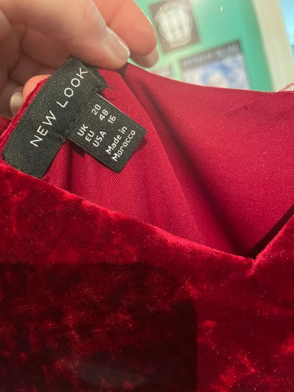 The New Look Red Crushed Velvet Mini Dress is available in sizes XL.