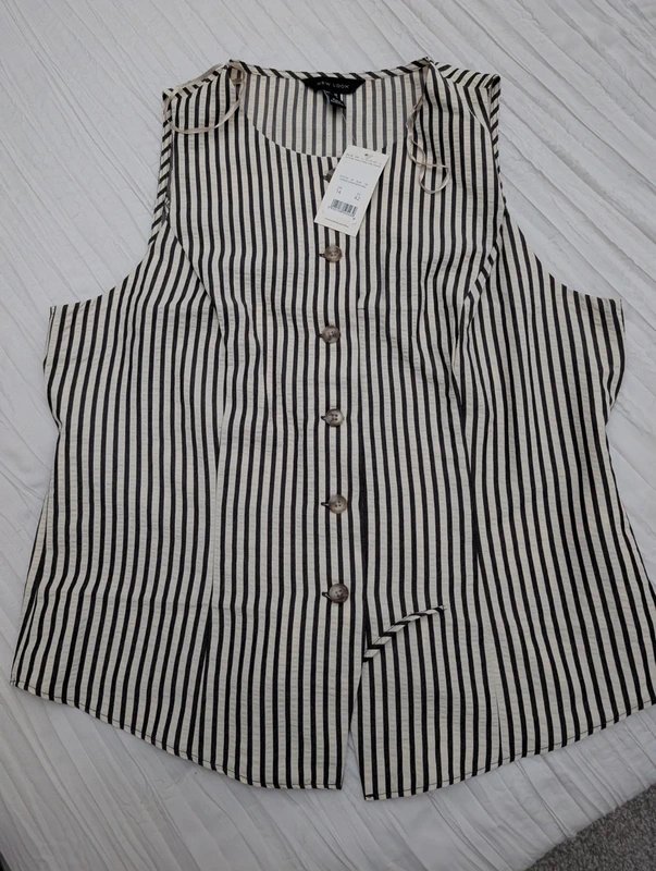 The New Look Striped Waistcoat with Buttons is available in sizes M.