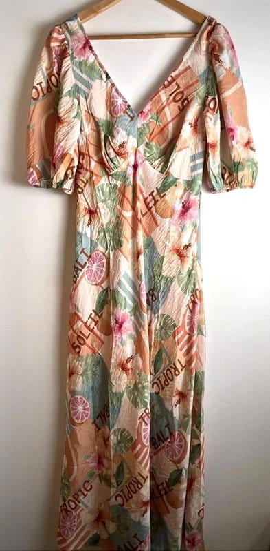 The New Look Multicoloured Floral Midi Dress is available in sizes M.