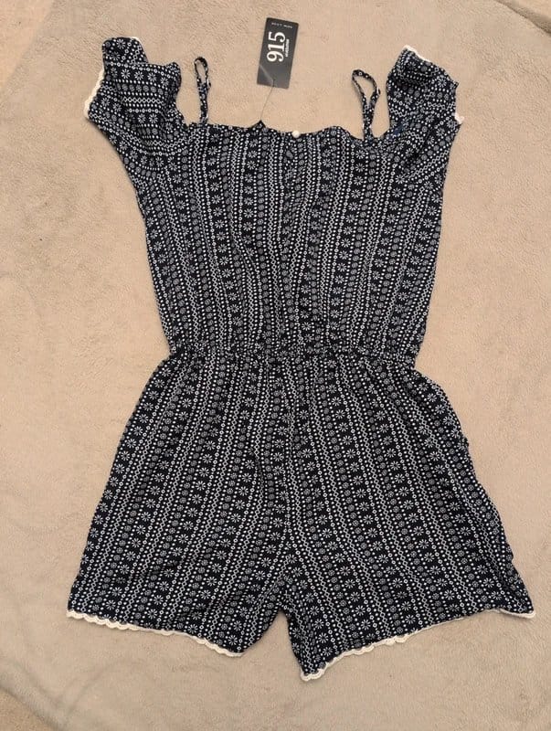 The New Look Navy Floral Print Shorts Jumpsuit is available in sizes M.