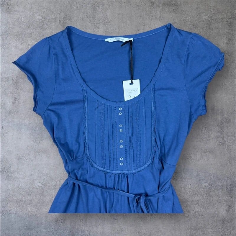 The New Look Blue Pintuck Tie Waist Blouse Size 14 is ideal for casual, summer, everyday.