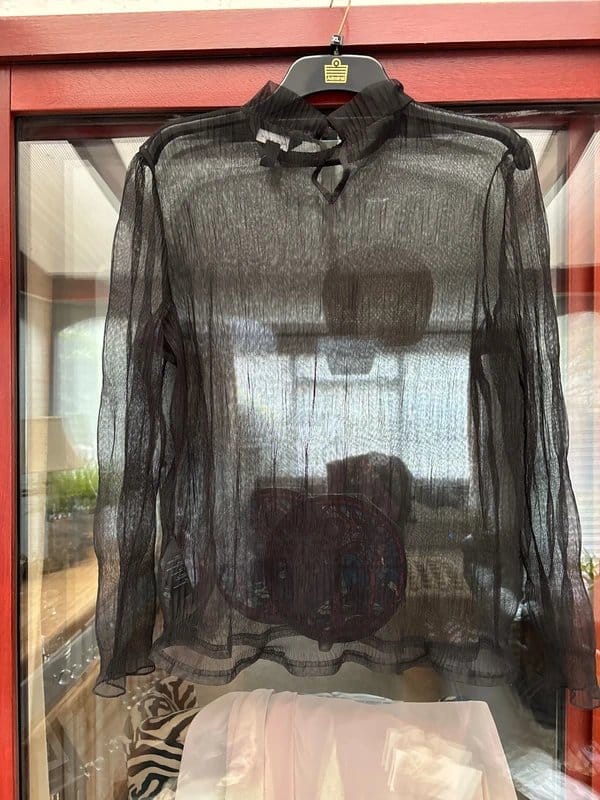 The New Look Black Chiffon Long Sleeve Blouse is available in sizes L.
