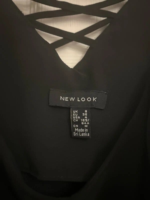 Stylish black satin top by New Look featuring a crisscross cut-out design on the front. Perfect for adding an edgy touch to your wardrobe.