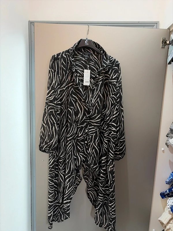 The New Look Long Front Chiffon Top in Black and White is available in sizes XXXL, XXL, XL, XS, L, M, S.
