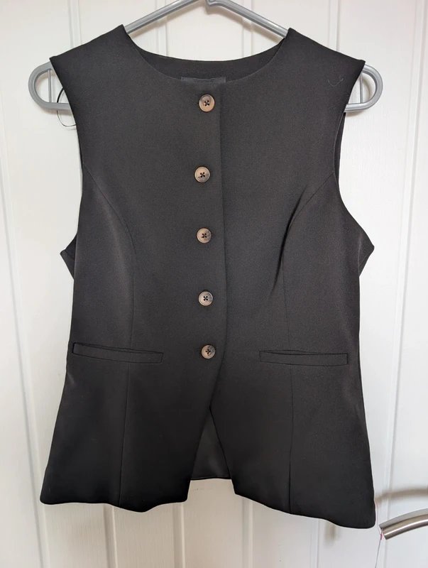 The New Look Sleeveless Waistcoat in Black is available in sizes M.