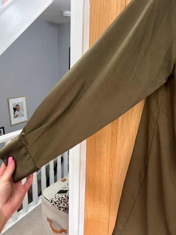 The New Look Khaki Ruche Front Shirt Dress Plus Size Size 18 is made from polyester, cotton.