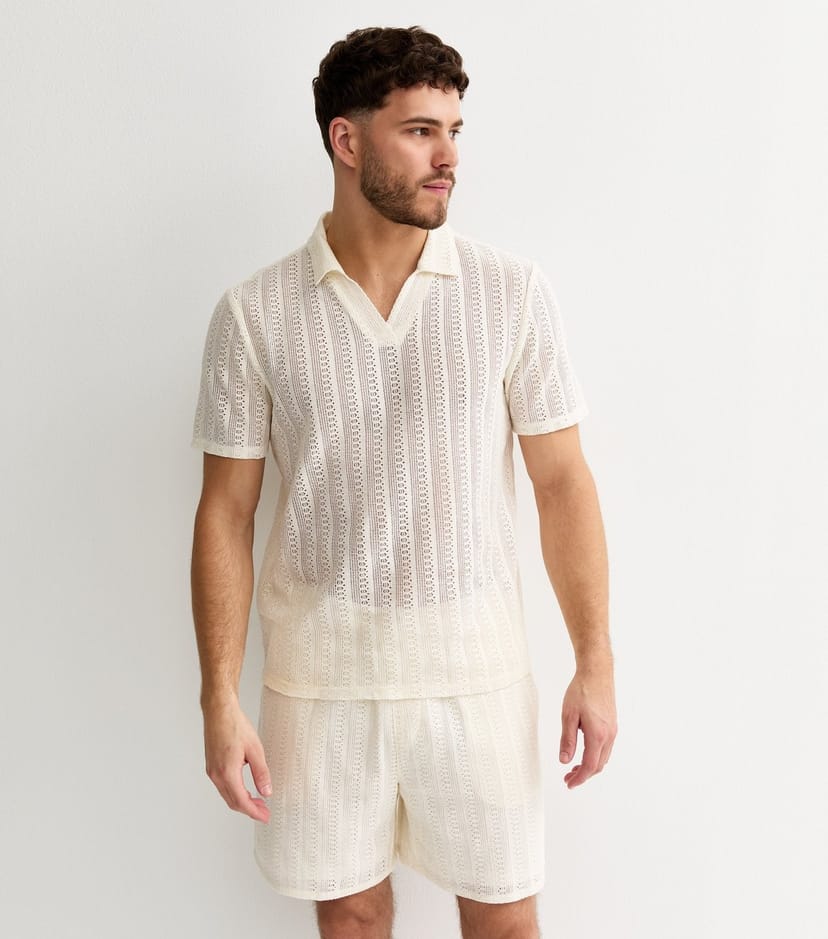 The New Look Off White Crochet Drawstring Shorts is made from crochet knit.