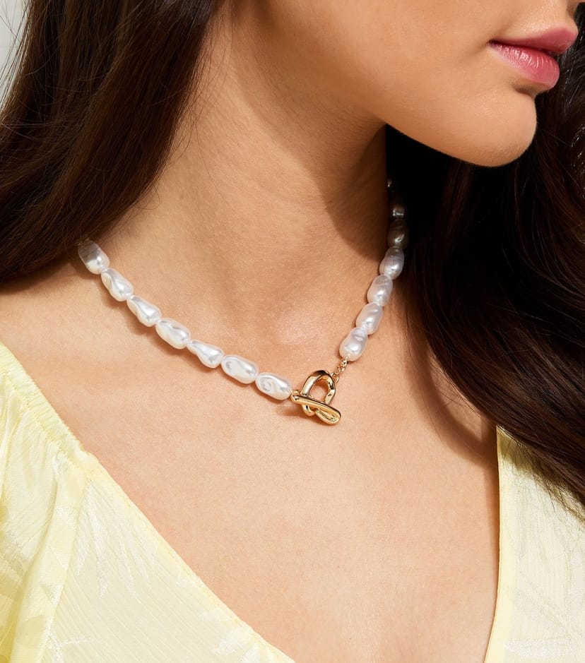 The New Look Off White Faux Pearl Knot Necklace is made from faux pearl, gold-tone metal.