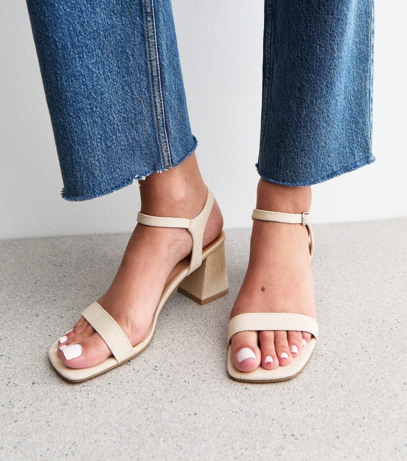 The New Look Cream Angular Block Heel Sandals is made from woven.