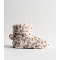 The New Look Cream Animal Print Faux Fur Slipper Boots is available in sizes M.