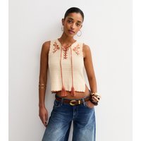 The New Look Cream Cotton Crochet Top with Floral Embroidery is ideal for casual, beach, outings.