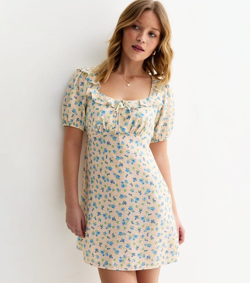 The New Look Cream Ditsy Floral Mini Dress is ideal for casual, beach, daytime.