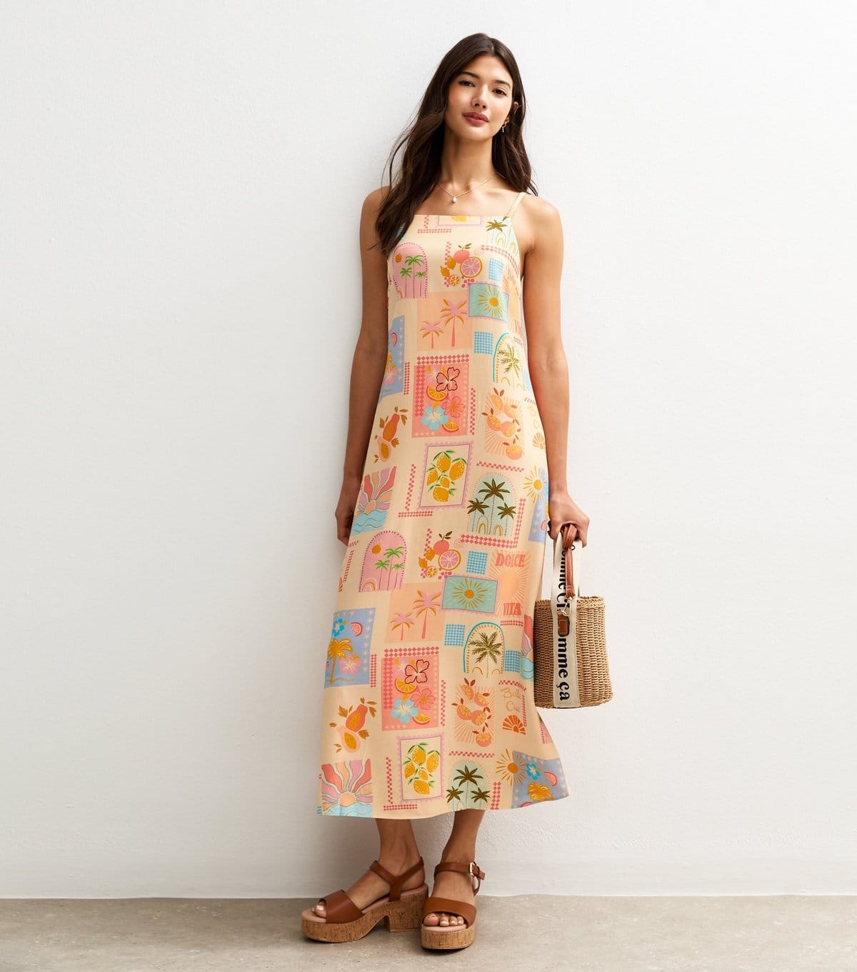 “Pair with strappy sandals and a woven clutch for a summery special occasion look.”
