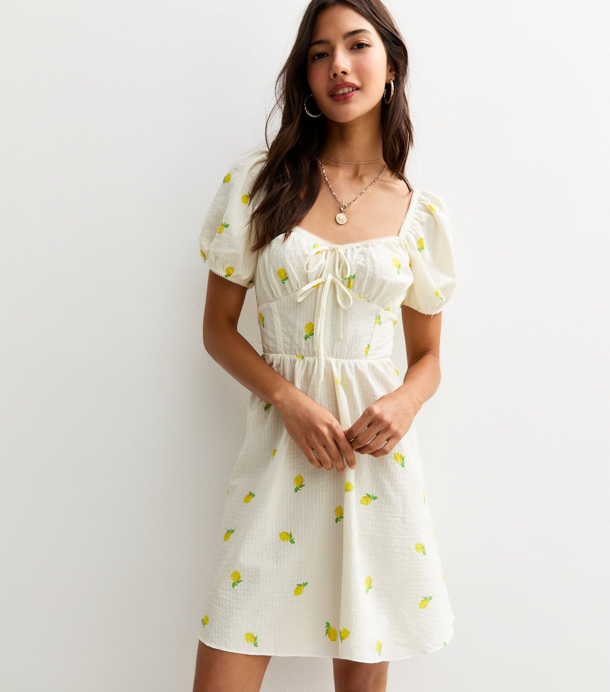 The New Look Cream Lemon Print Mini Dress is made from woven.