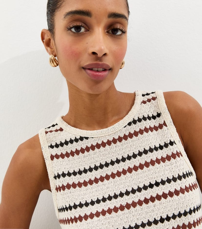 The New Look Cream Striped Knitted Beach Vest Top is made from knit.