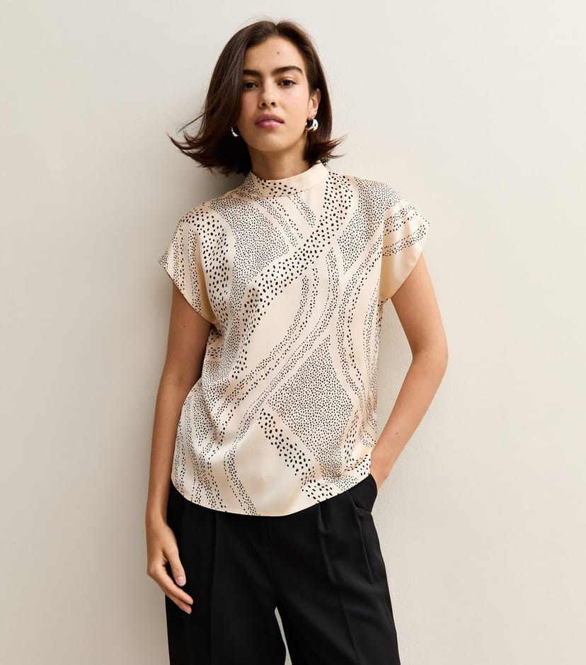 The New Look Cream Polka Dot Print Satin T-Shirt is ideal for casual, smart-casual, everyday.