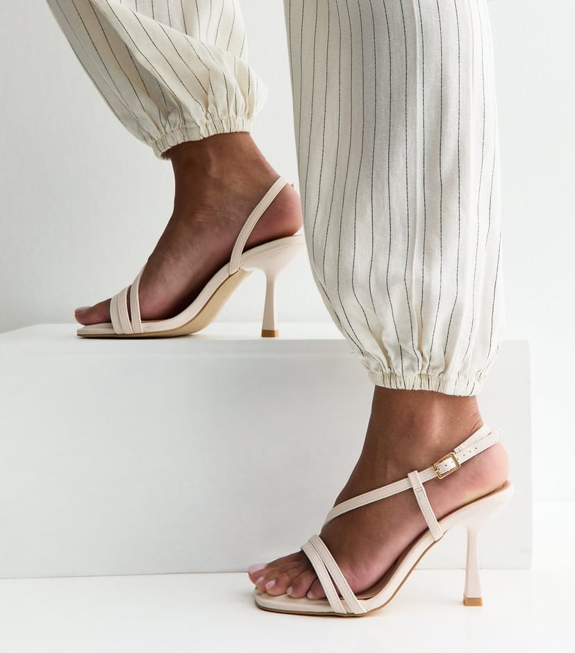 The New Look Off White Vegan Stiletto Sandals is available in sizes 3, 4, 5, 6, 7, 8, 9.