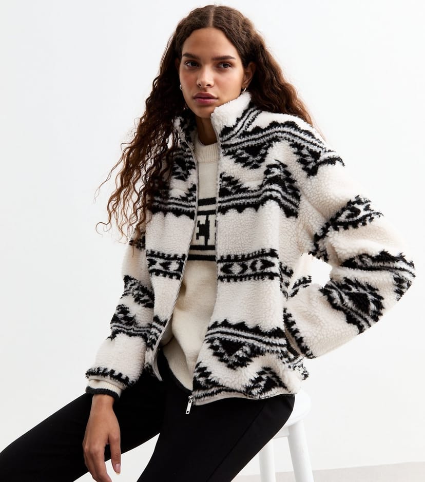 The New Look Off White Abstract Print Fleece Jacket is ideal for casual, everyday, outdoor.