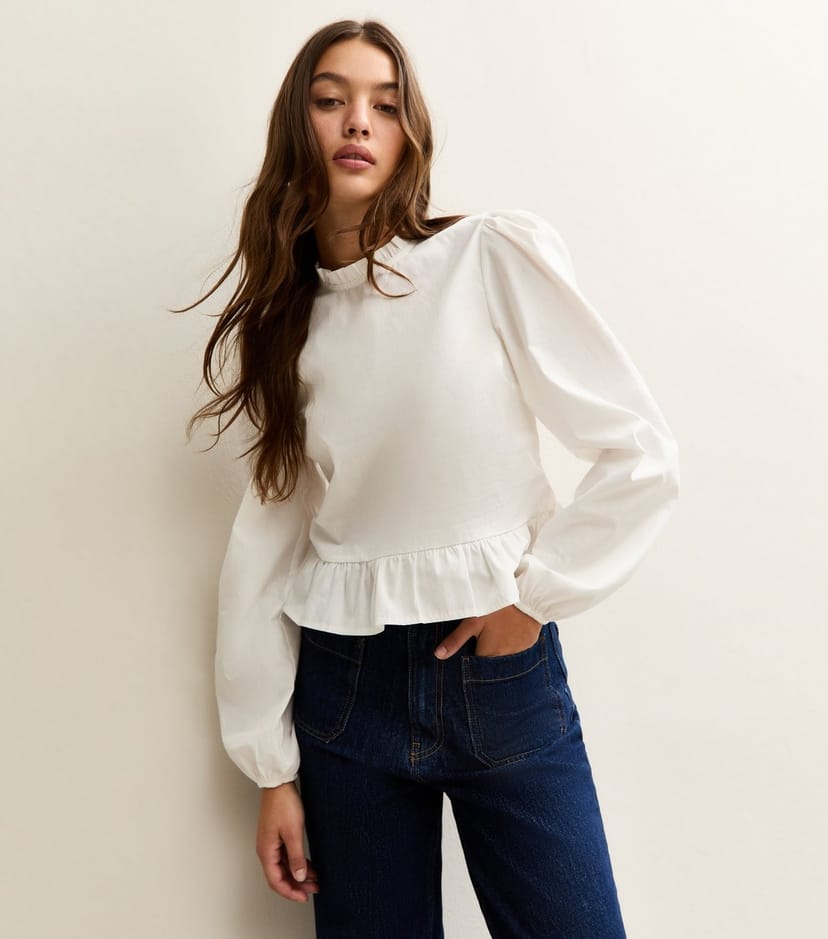 The New Look Off White Cotton Ruffled Collar Top is made from cotton.