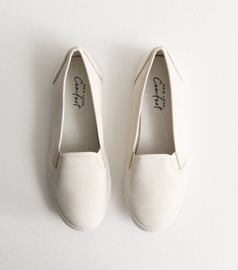 The New Look Off White Suedette Slip-On Trainers is available in sizes 4, 9.