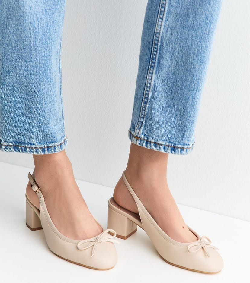The New Look Off White Faux Leather Slingback Ballerina Pumps is ideal for casual, evening, work.