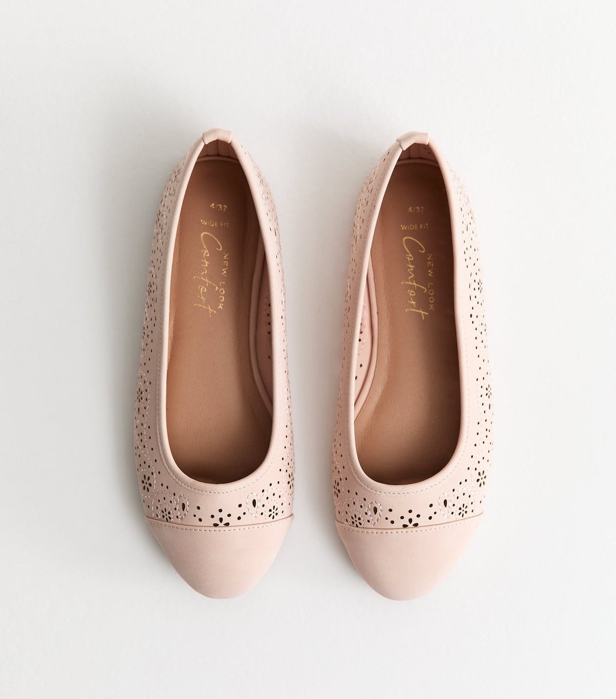 Charming pink faux-leather ballet flats with floral cutouts for a pretty finish. Designed for a wide fit to ensure comfort, these shoes feature a brushed toe panel. Perfect for everyday wear.